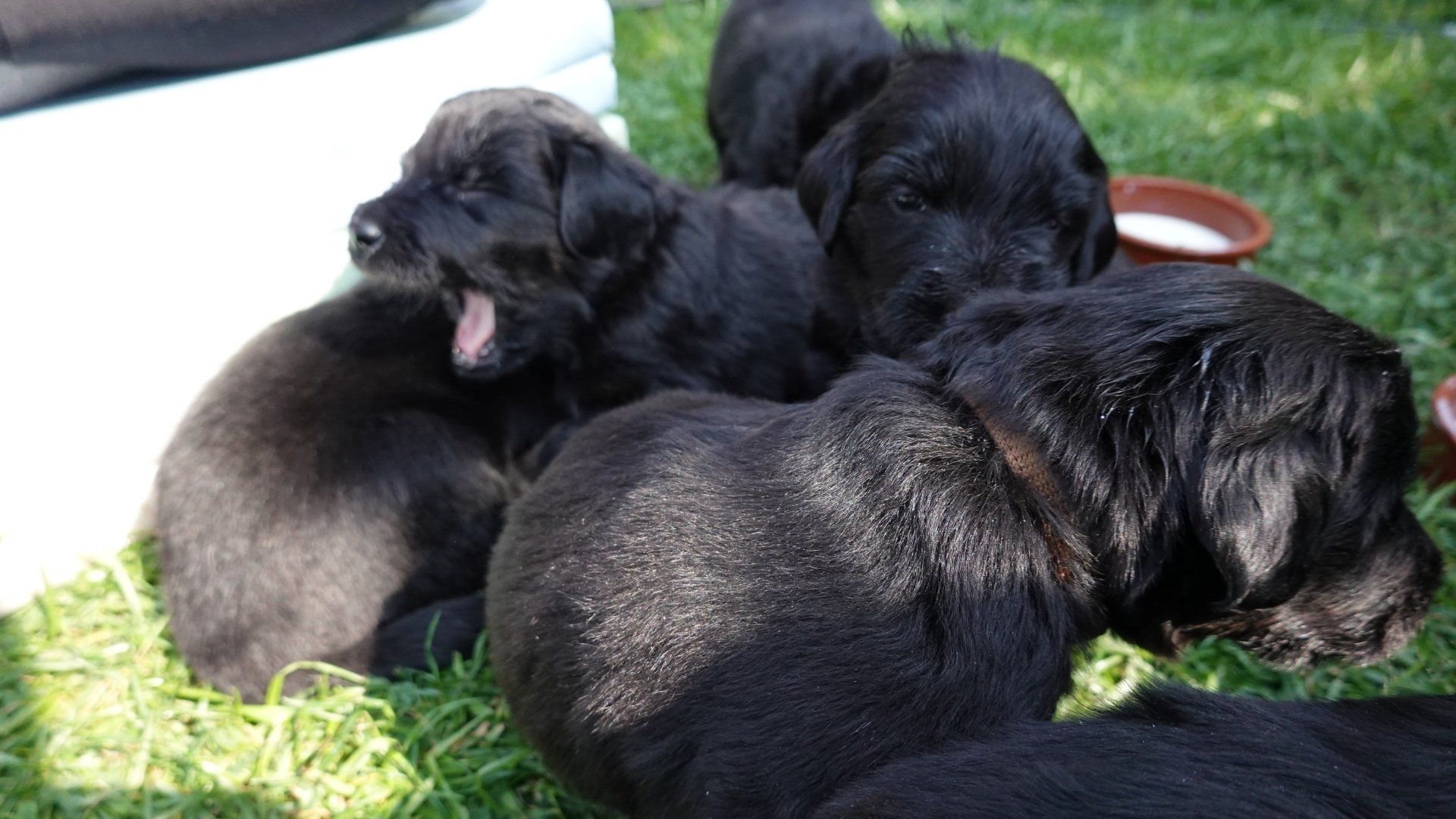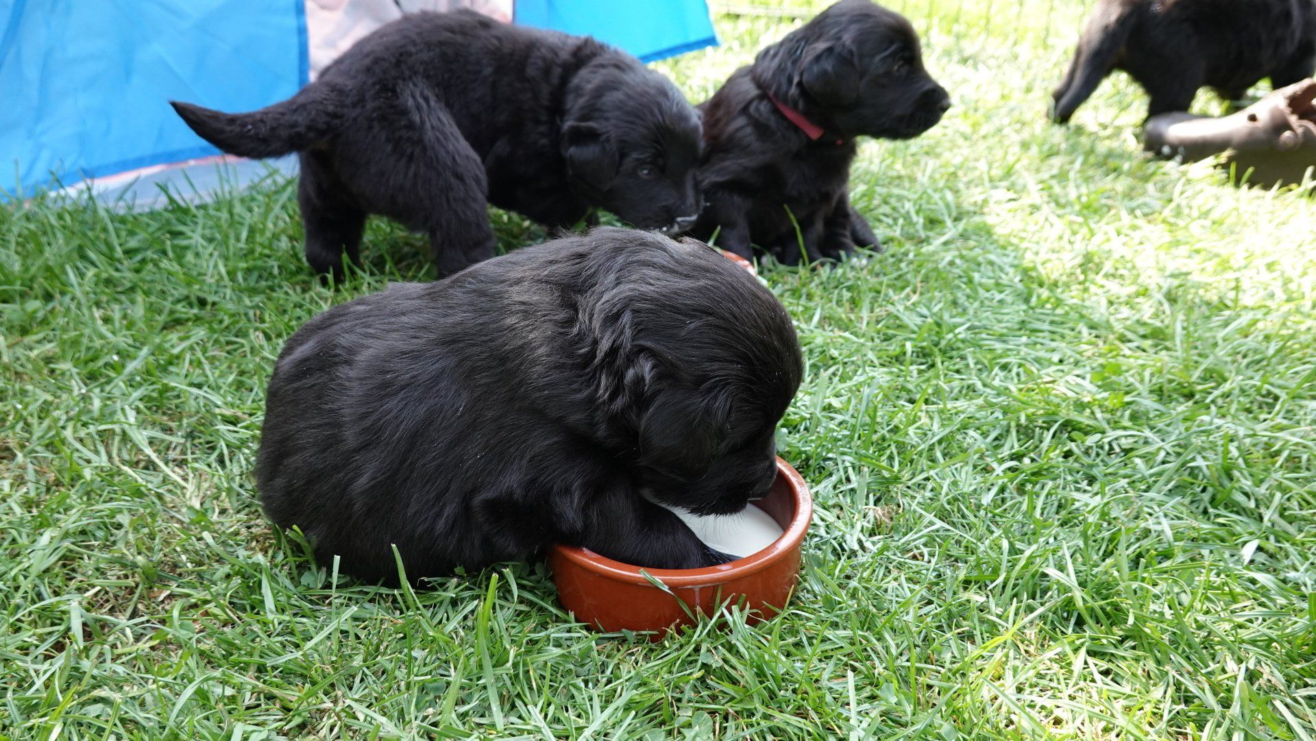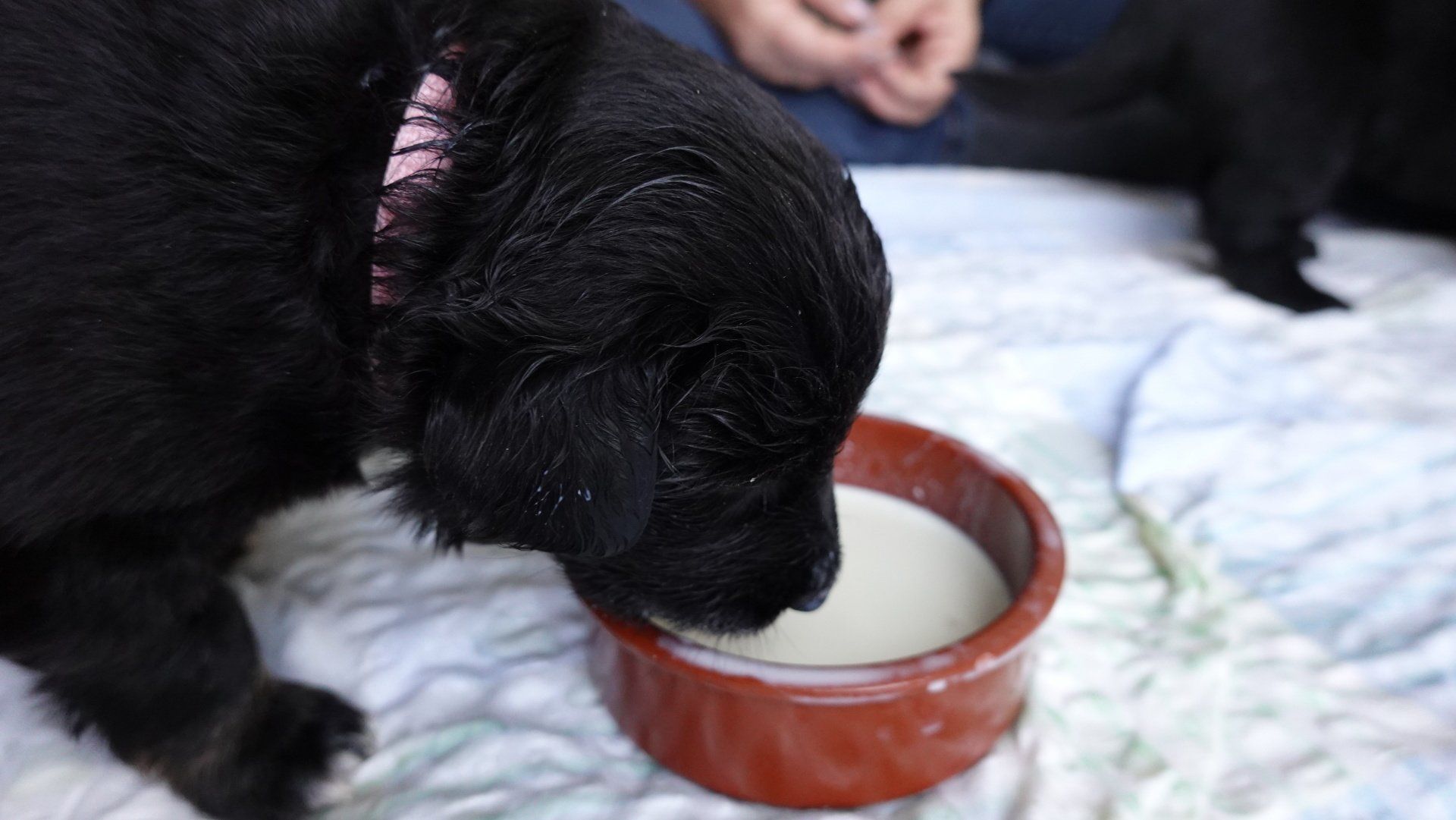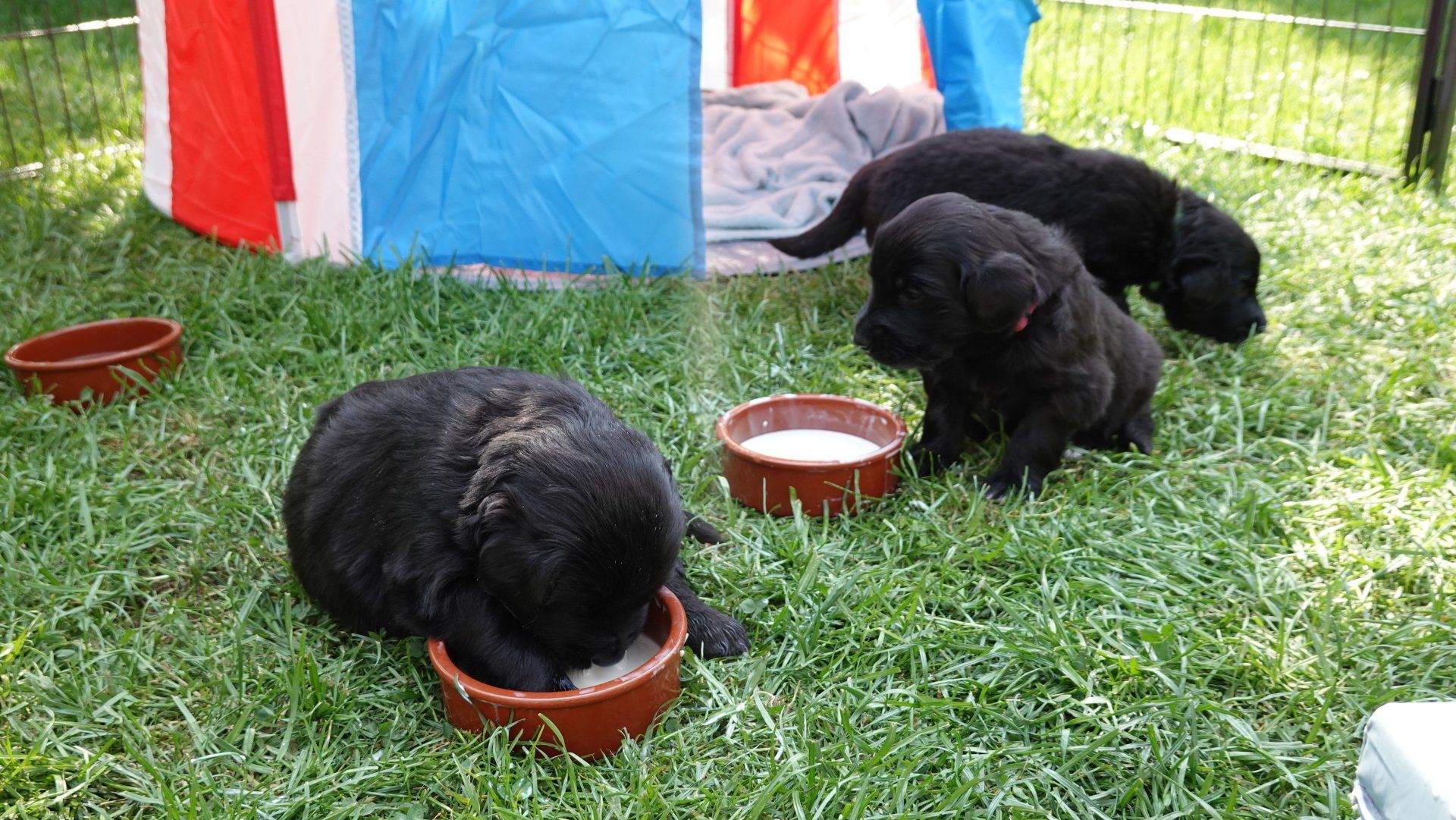 Wir haben weiter mit dem Zufüttern angefangen, die Welpenmilch wird inzwischen besser und begeisteter geschlabbert.