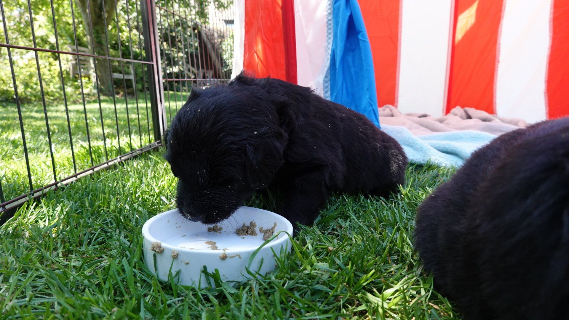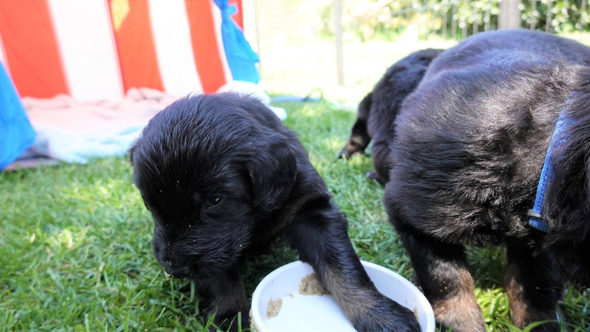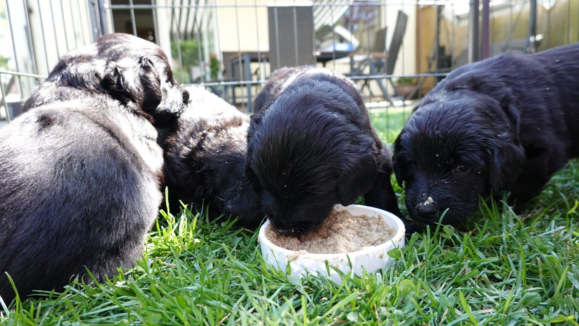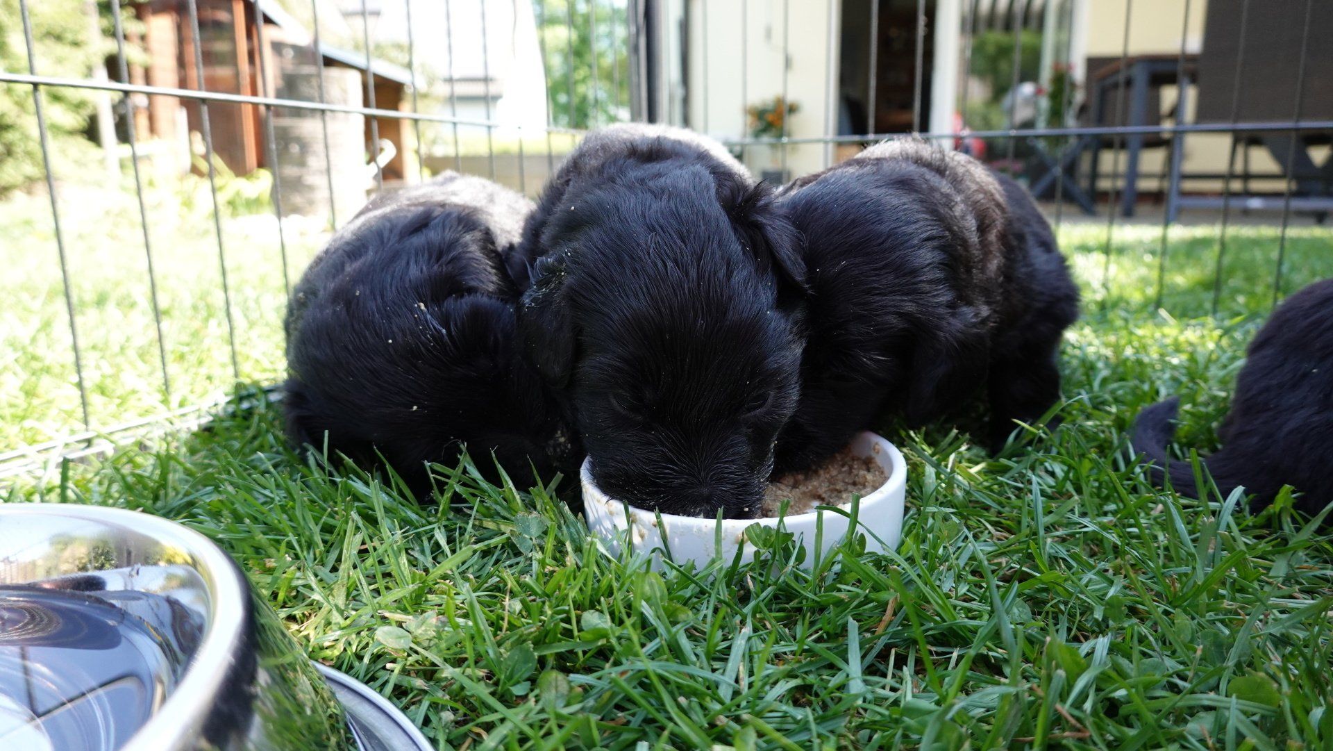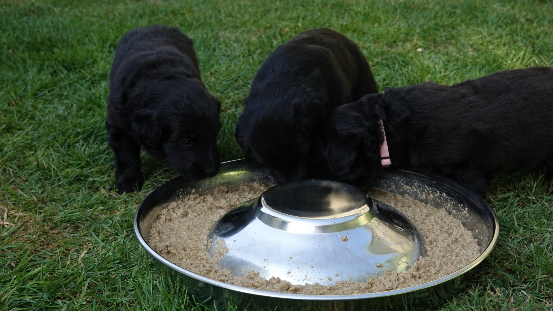Rindertartar kommt jedoch bereits besser an, eingeweichtes Welpenfutter führte jedoch zu regelrechten Rangeleien an der Näpfen.