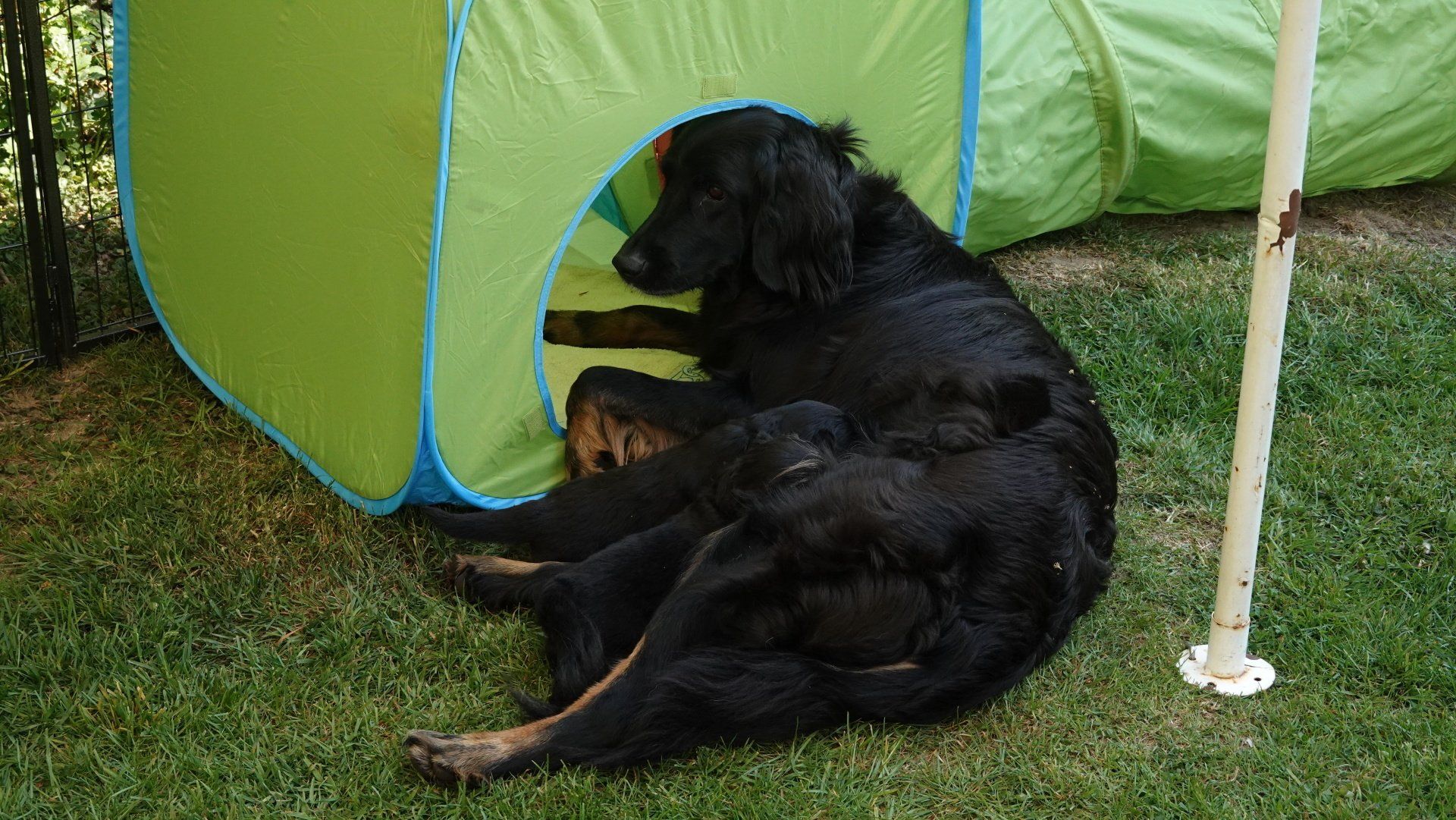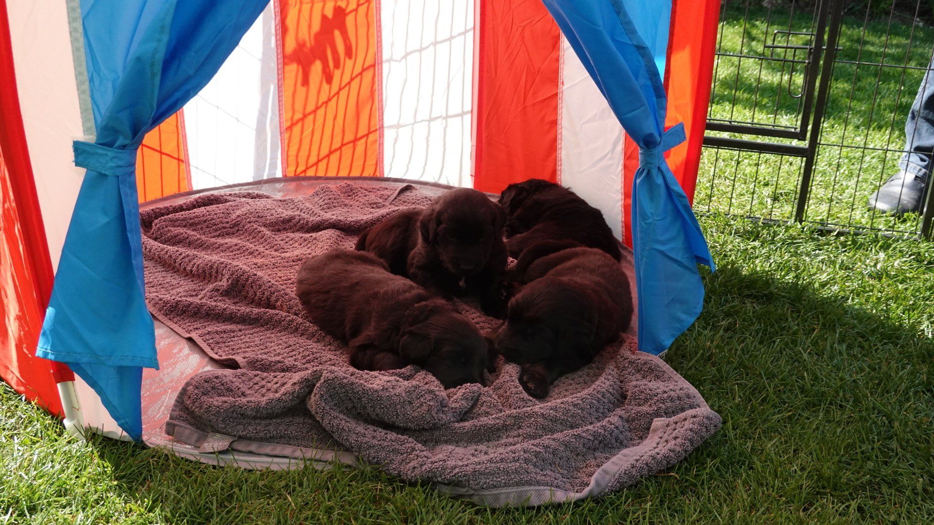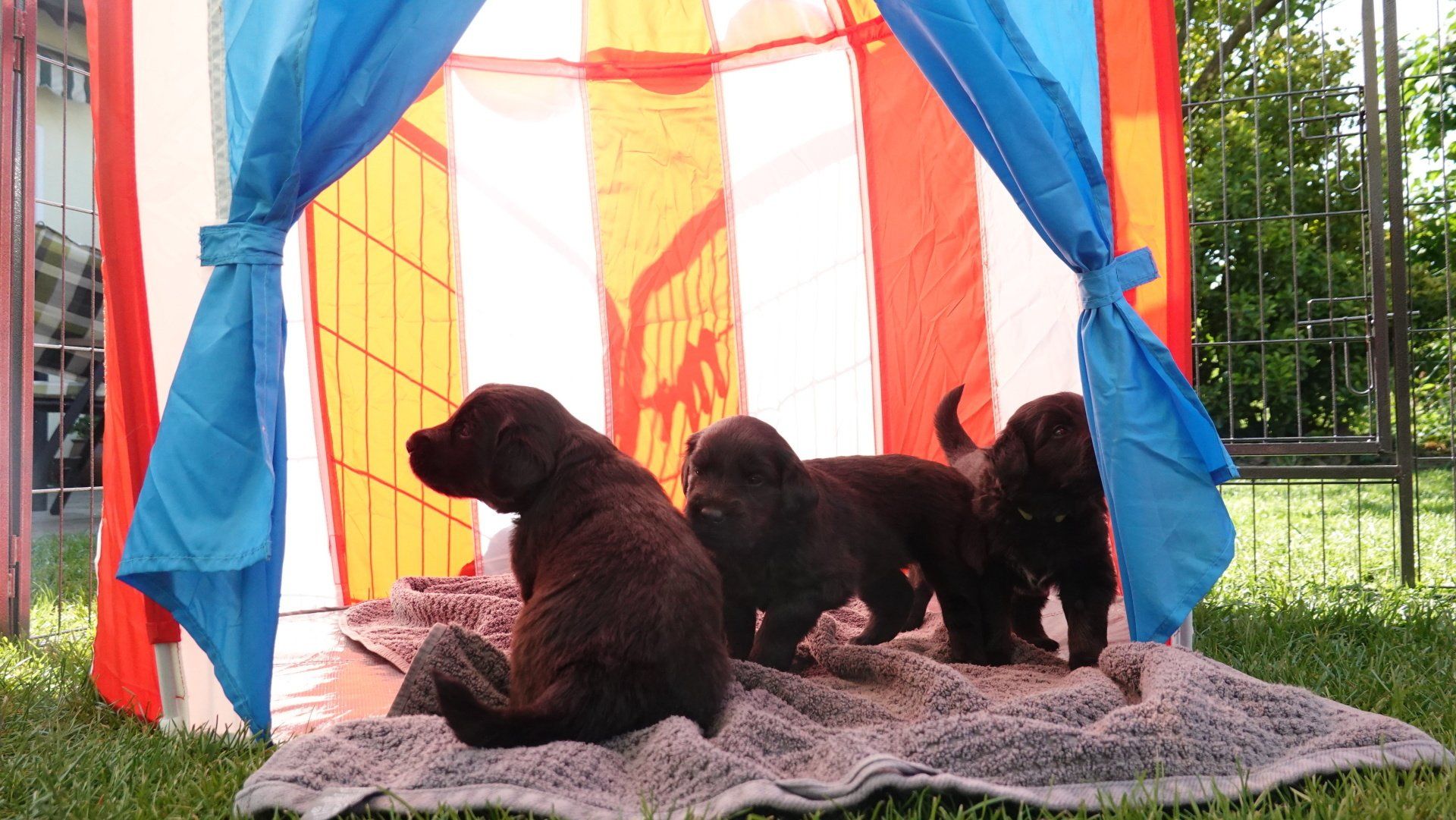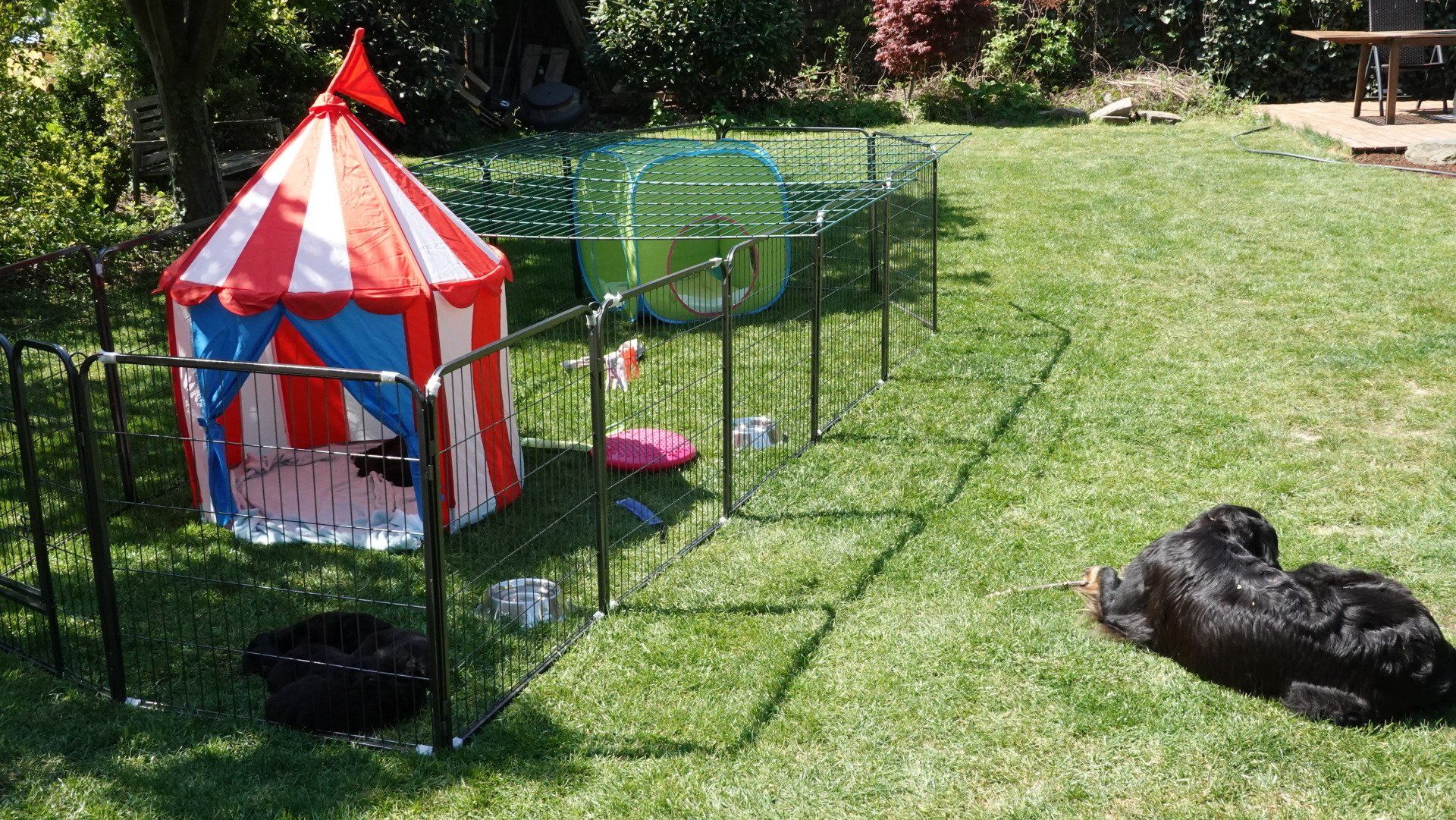Das Welpengehege wurde inzwischen mit einem großen Zelt überdacht und erweitert. Es wurde dann zuerst einmal alles genaustens inspiziert.