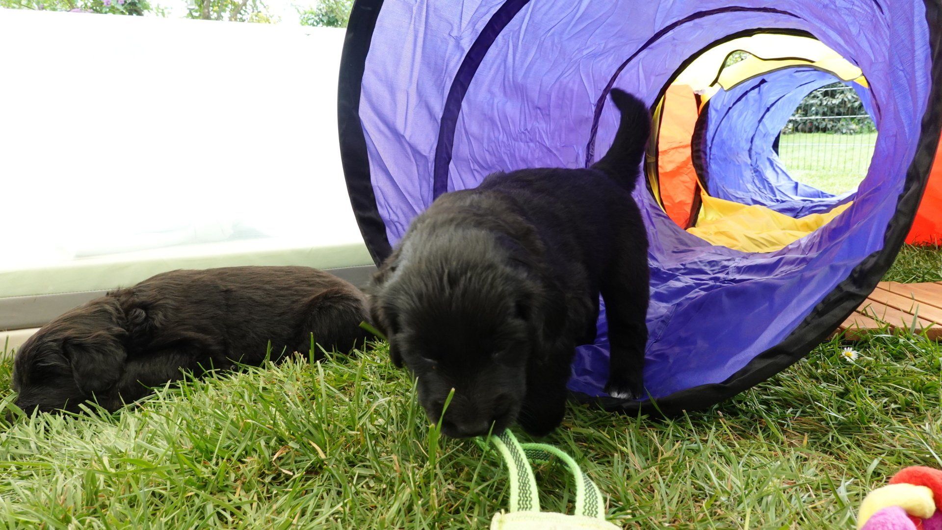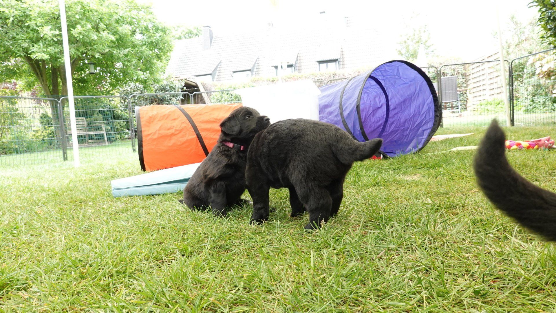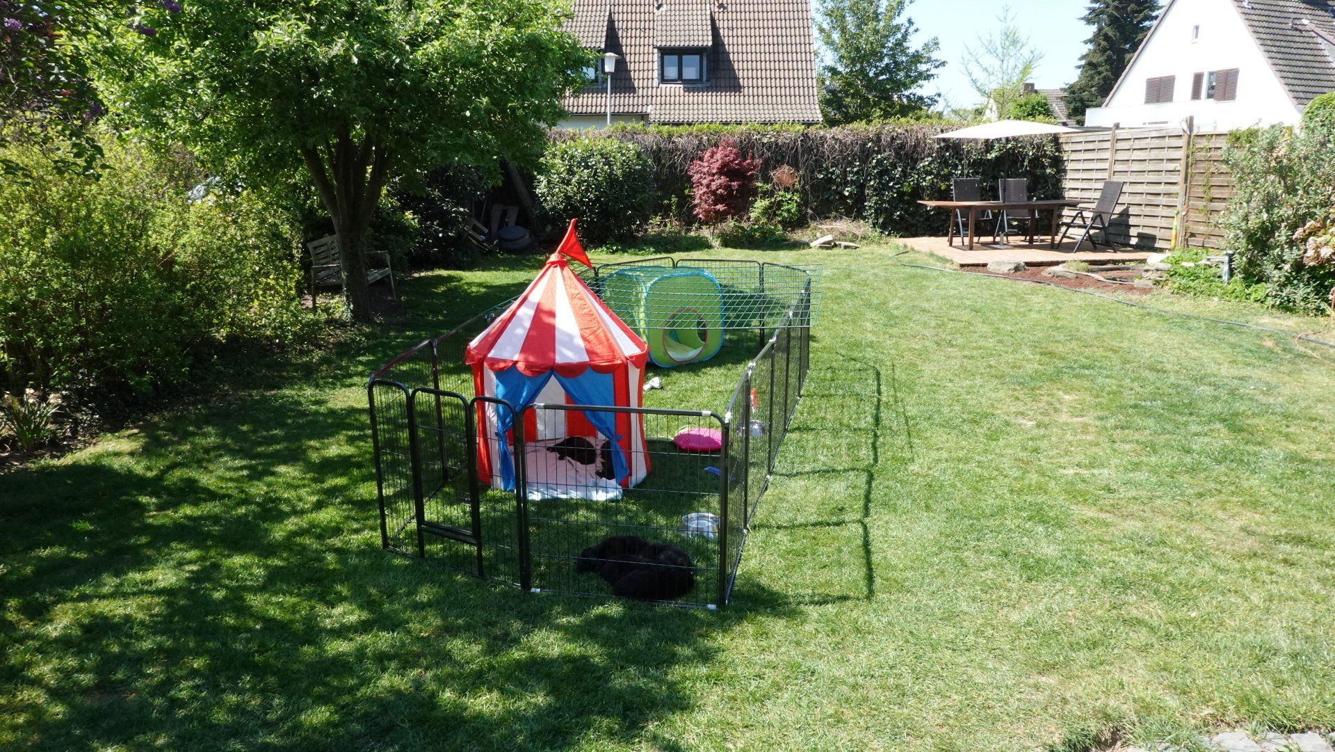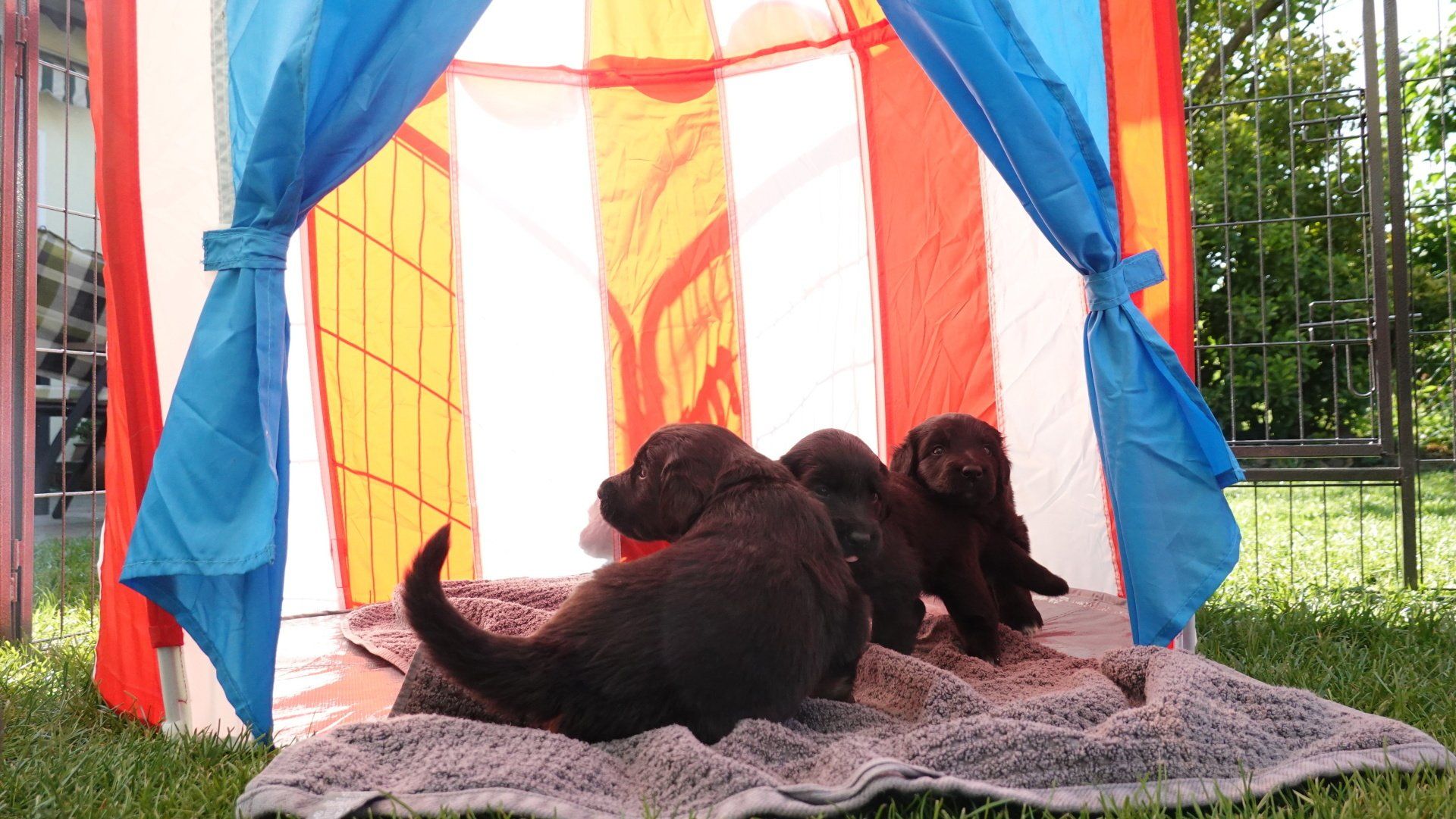 Das Welpengehege wurde inzwischen mit einem großen Zelt überdacht und erweitert. Es wurde dann zuerst einmal alles genaustens inspiziert.